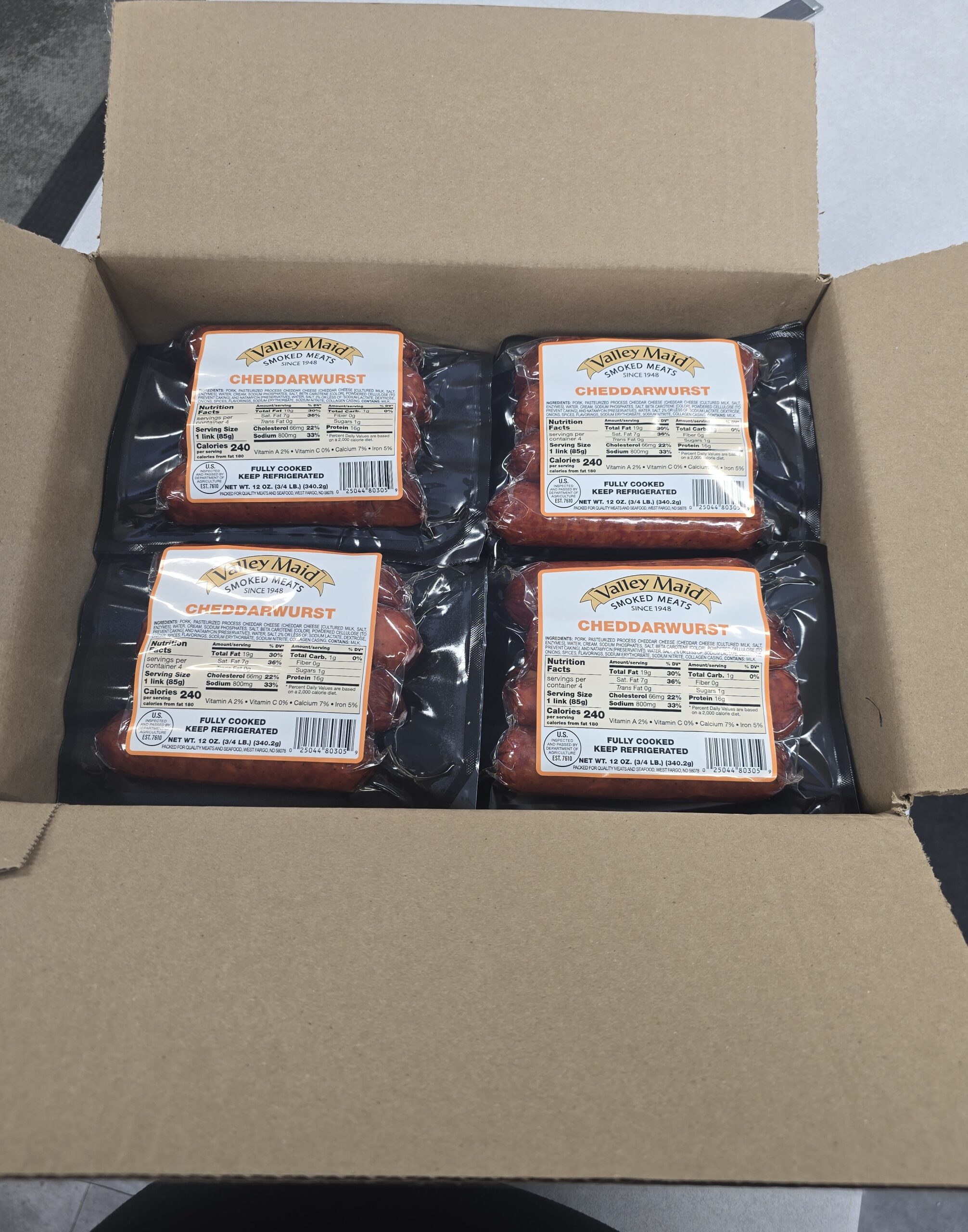 Pork, Pasteurized process Cheddar Cheese (Cheddar Cheese [Cultured Milk, Salt, Enzymes], Water, Cream, Sodium Phosphates, Salt, Beta Carotene [COLOR], POWDERED CELLULOSE [TO PREVENT CAKING], AND NATMYCIN [PRESERVATIVE]), WATER, SALT 2% OR LESS OF; SODIUM LACTATE, DEXTROSE, ONIONS, SPICES, FLAVORINGS, SODIUM ERYTHORBATE, SODIUM NITRITE, COLLAGEN CASING, CONTAINS: MILK